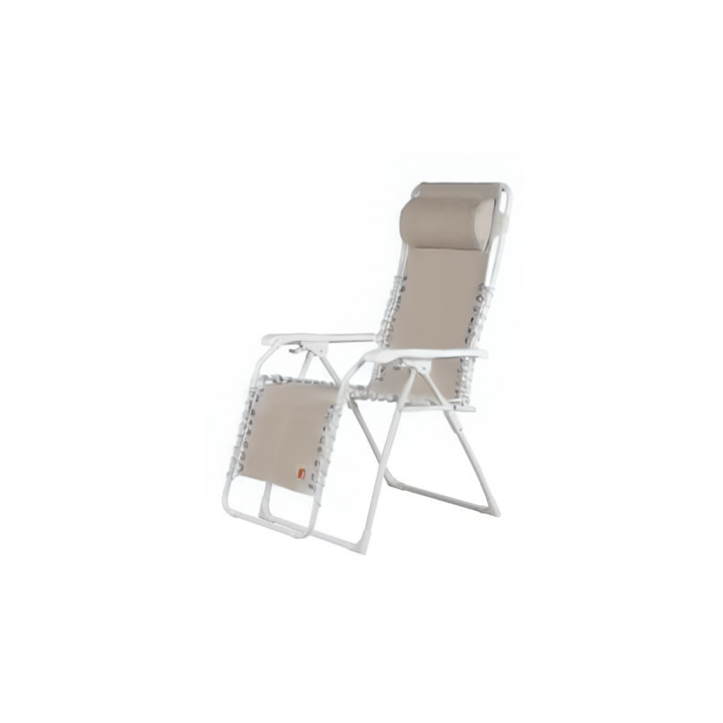 - Poltrona Basculante Da Esterno Zero Gravity Linea Movida Con Telaio In Acciaio Bianco E Telo In Texfil Beige