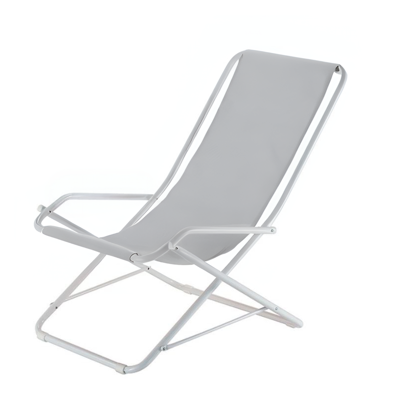 Poltrona Basculante Da Esterno Linea Dondolina Con Telaio In Acciaio Bianco E Telo In Texfil Grigio