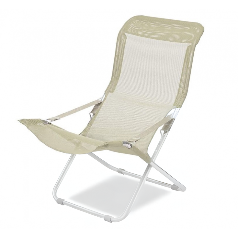 - Poltrona Sdraio Da Esterno Regolabile In 3 Posizioni Linea Fiesta Con Telaio In Acciaio Bianco E Telo In Texfil Beige