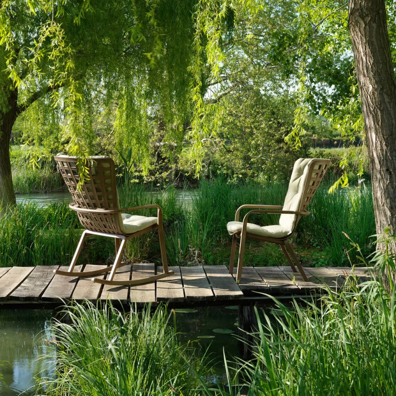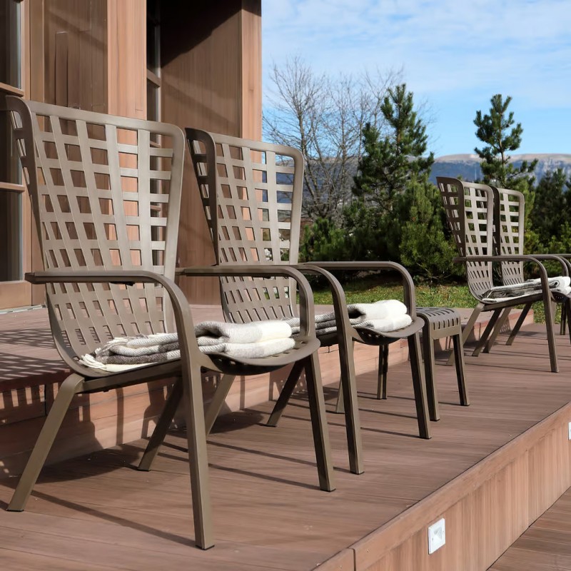 Folio è una poltrona relax per l’outdoor realizzata in resina fiberglass traforata con motivi a quadri e finitura mat. La poltrona presenta un avvolgente schienale collegato senza soluzione di continuità alla generosa seduta ribassata, un unico e raffinato abbraccio strutturale reclinabile in due posizioni comfort.