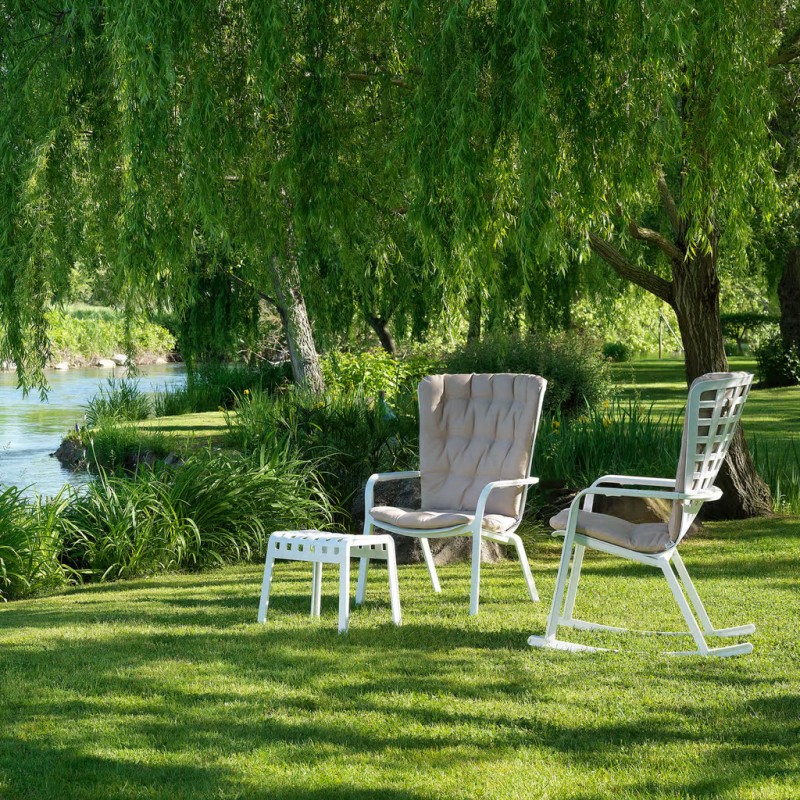 Folio è una poltrona relax per l’outdoor realizzata in resina fiberglass traforata con motivi a quadri e finitura mat. La poltrona presenta un avvolgente schienale collegato senza soluzione di continuità alla generosa seduta ribassata, un unico e raffinato abbraccio strutturale reclinabile in due posizioni comfort.