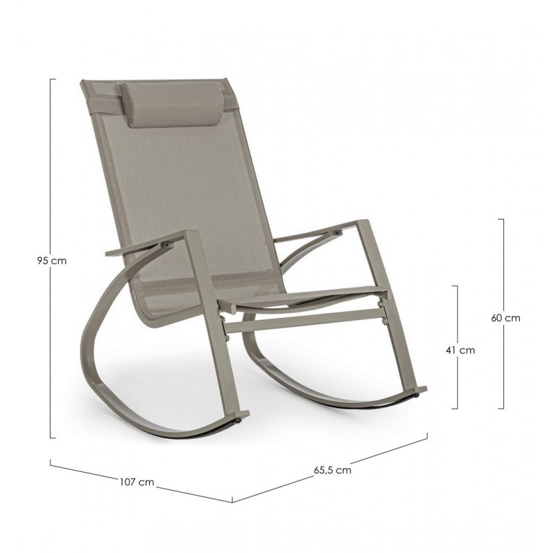 - Poltrona dondolo in acciaio con poggiatesta 65,5l x 95h cm seduta in textilene tortora demid