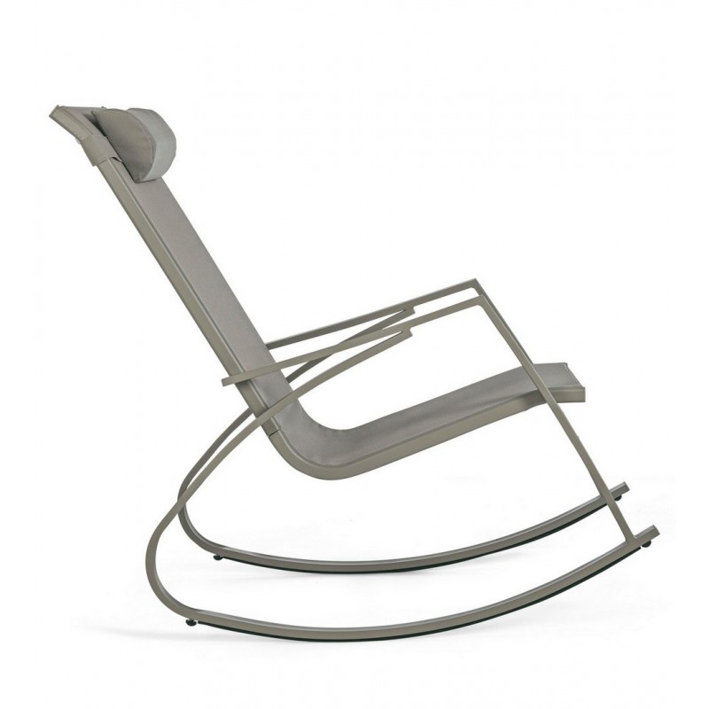Poltrona dondolo in acciaio con poggiatesta 65,5l x 95h cm seduta in textilene tortora demid