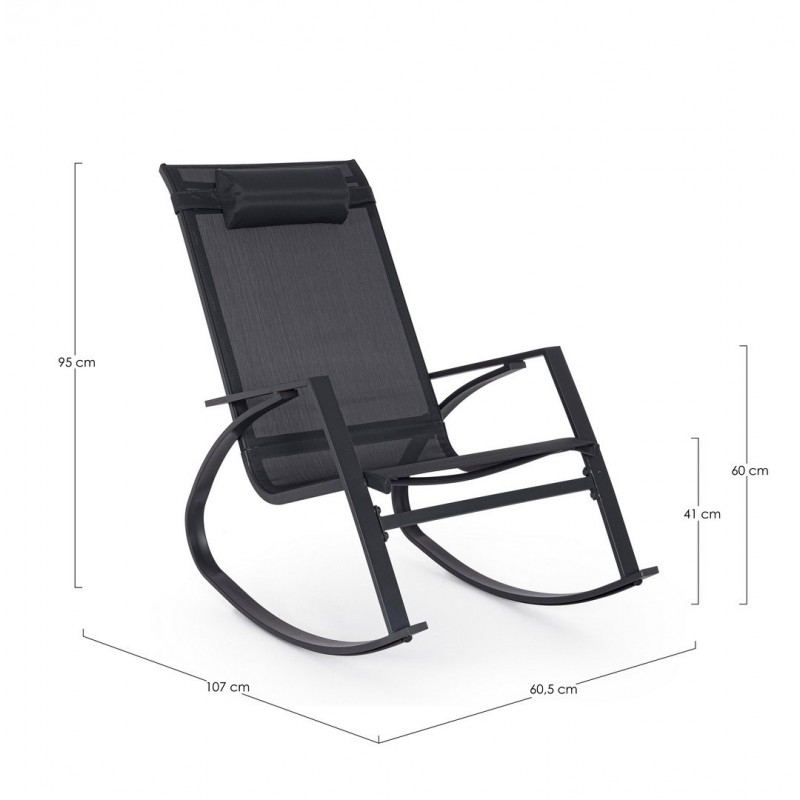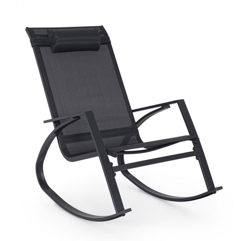 Poltrona dondolo in acciaio con poggiatesta 65,5l x 95h cm seduta in textilene antracite demid