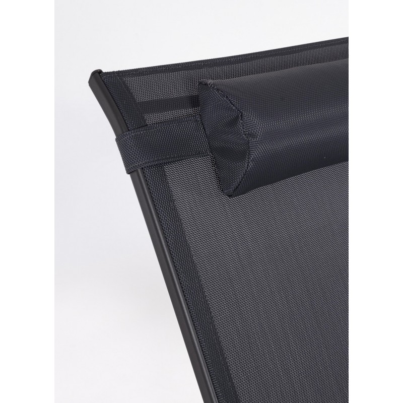 Struttura in acciaio (trattato per esterno tramite fosfatazione) verniciato a polvere (poliestere), seduta e schienale in textilene 2x1 (poggiatesta imbottito). viteria in acciaio galvanizzato. da assemblare.