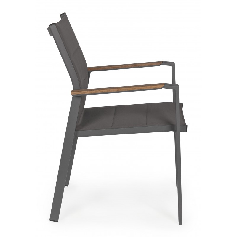 KLULK Poltrona In Alluminio Antracite,Seduta E Schienale In Texilene Imbottito,Braccioli Con Inserti In Polywood