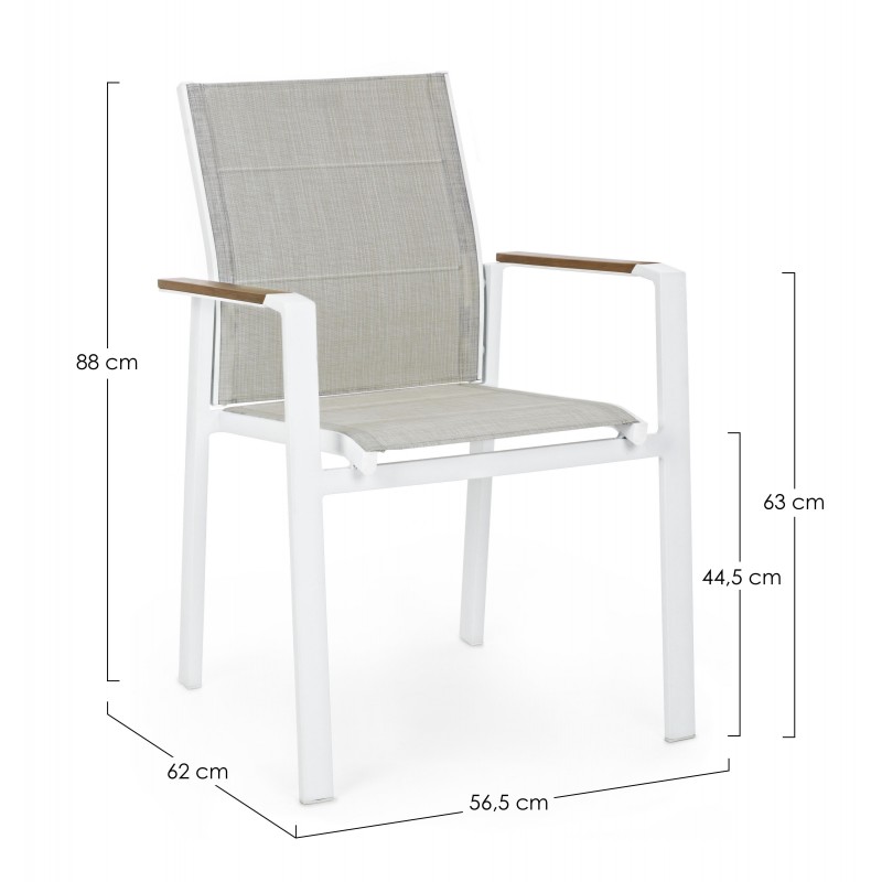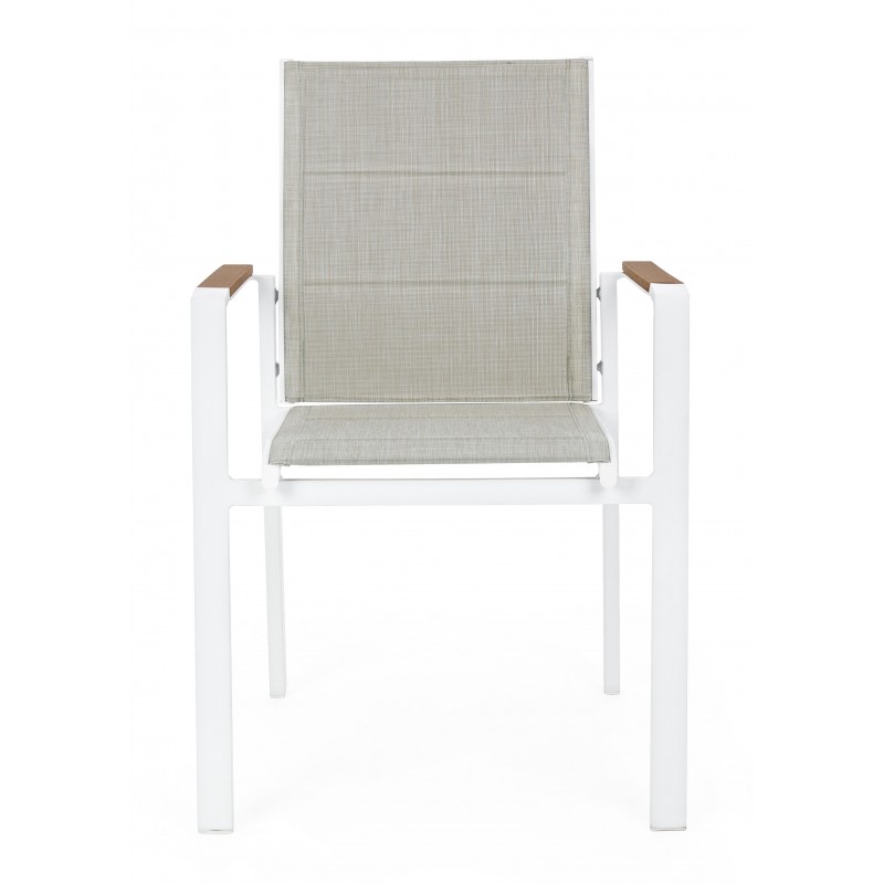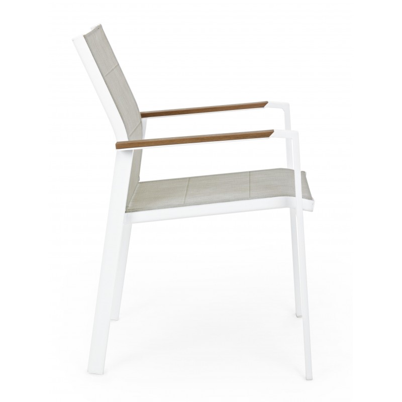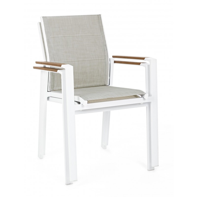 KLULK Poltrona In Alluminio Bianco ,Seduta E Schienale In Texilene Imbottito,Braccioli Con Inserti In Polywood