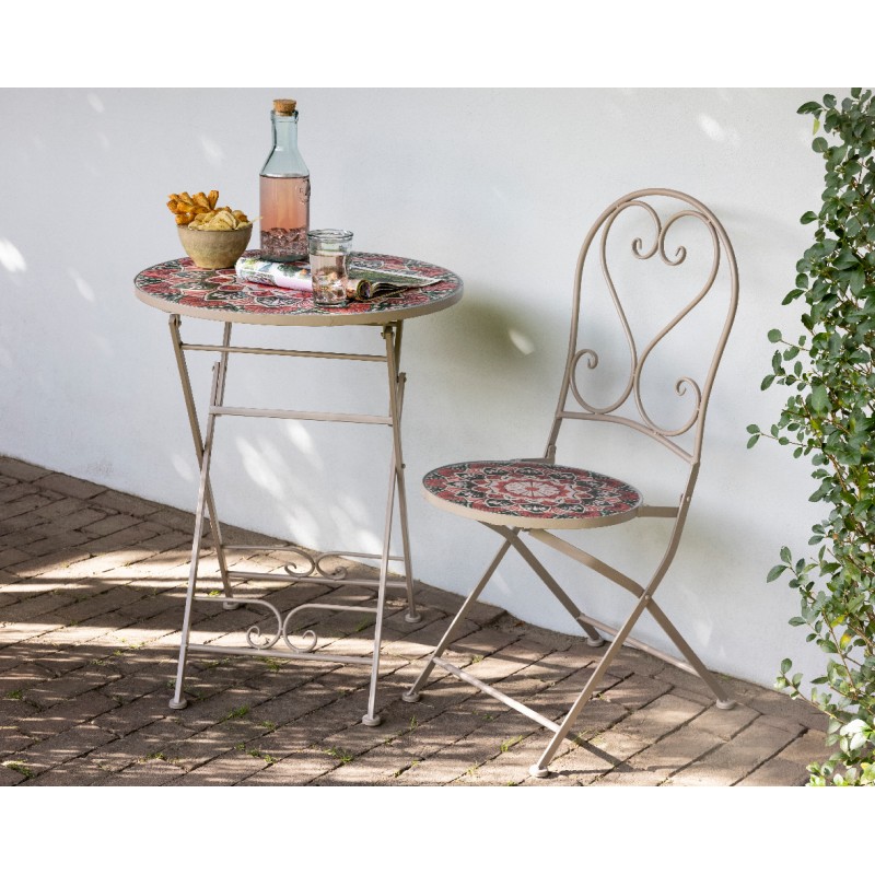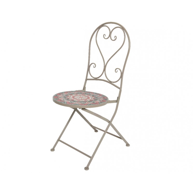 GLOUPIE Sedia Pieghevole Da Esterno In Acciaio Verniciato A Polvere Epossidica Beige Con Mosaico Floreale Zante
