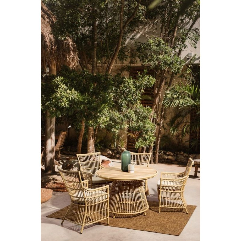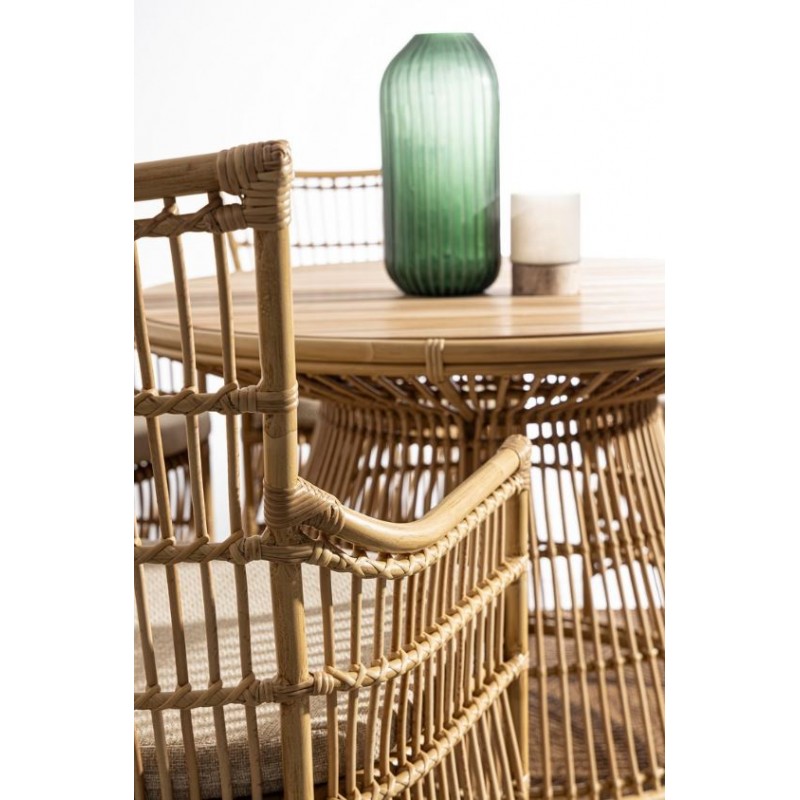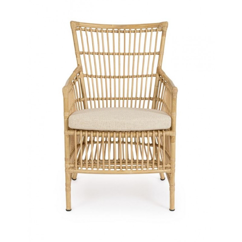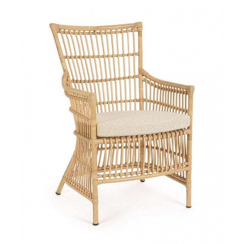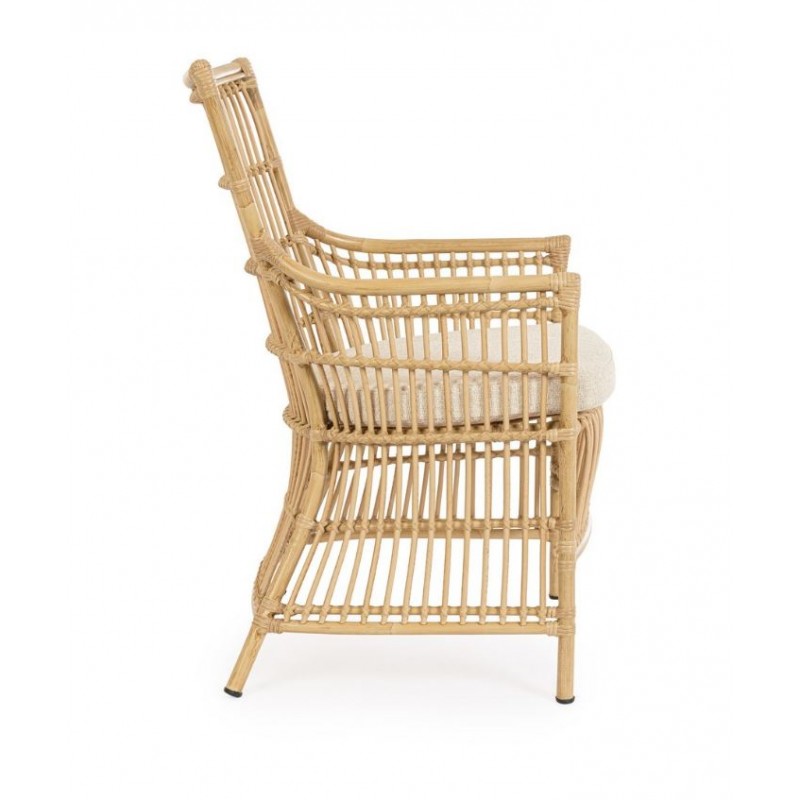 La struttura in alluminio verniciato a polvere effetto rattan si intreccia con maestria con la fibra sintetica, creando un gioco di geometrie morbide e armoniose. La sedia Adelma è realizzata con materiali di altissima qualità, resistenti all'acqua, ai raggi UV e alle intemperie. Potrai lasciarla tranquillamente all'aperto senza doverti preoccupare di rovinarla, sicuro che manterrà la sua bellezza intatta nel tempo. I cuscini in tessuto color beige, sfoderabili e lavabili, sono realizzati in morbido tessuto sunproof olefin per offrirti un comfort e una resistenza all'ingiallimento senza pari. Potrai rilassarti completamente e goderti il tuo tempo libero all'aperto, cullato dalla piacevole sensazione di morbidezza