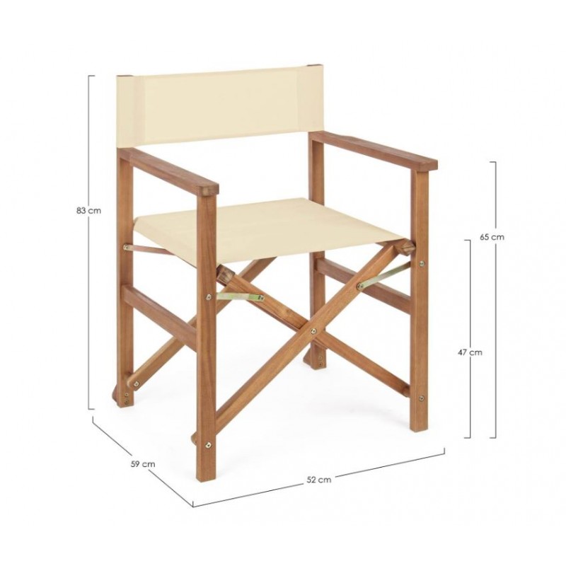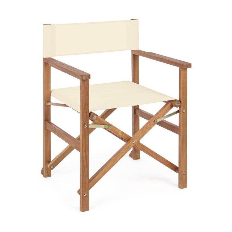 Sedia Da Regista Noemi Ecru Con Struttura In Legno Di Acacia Con Finitura Ad Olio E Seduta In Tessuto Di Poliestere Beige