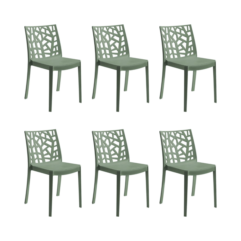GLOUPIE Set 6 Sedie Matrix In Polipropilene Verde, 55x47x82 Cm,Peso 4 Kg,Per Interno Ed Esterno,Made In Italy,Impilabili