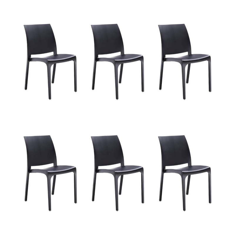 GLOUPIE Set 6 Sedie Volga In Polipropilene Nero,54x46x81Cm,Peso 3,5Kg,Per Interno/Esterno,Made In Italy,Sedie Impilabili