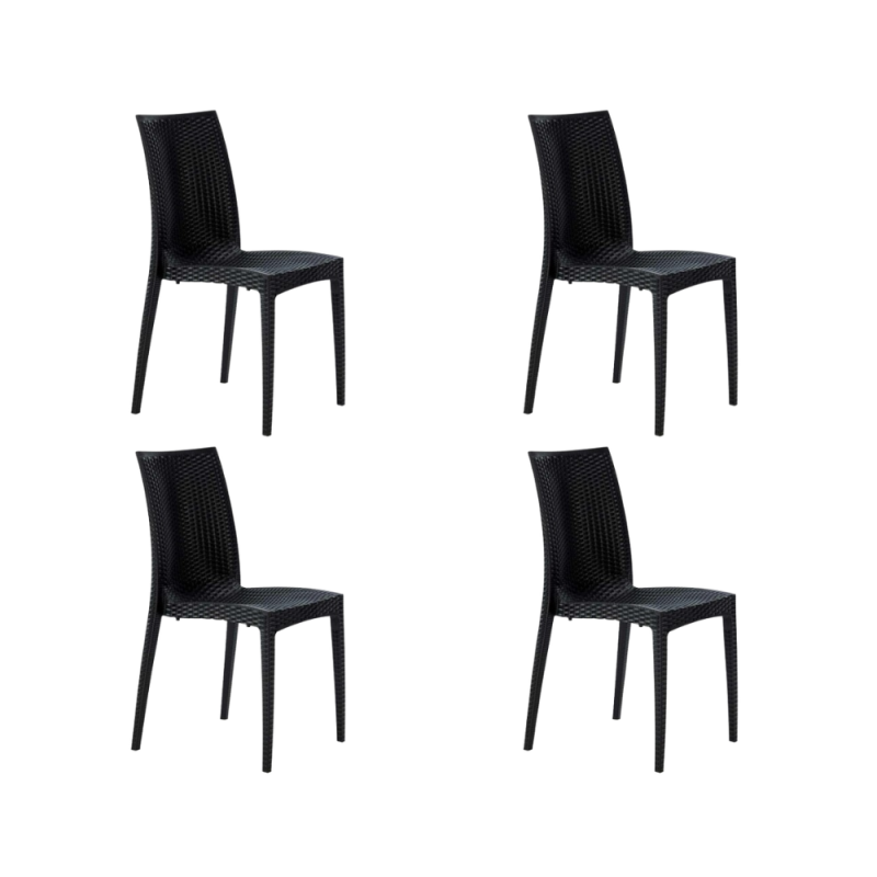 - GLOUPIE Set 4 Sedie Da Giardino Jersey In Polipropilene Antracite Dall'Effetto Rattan, Impilabile, L 57 x P 50 x H 89 Cm