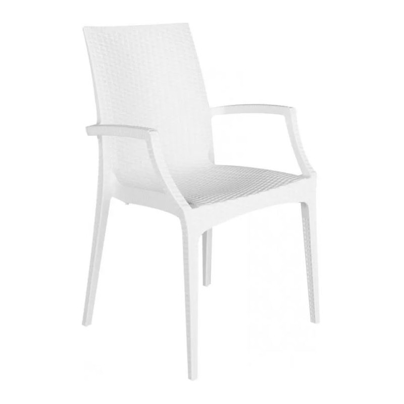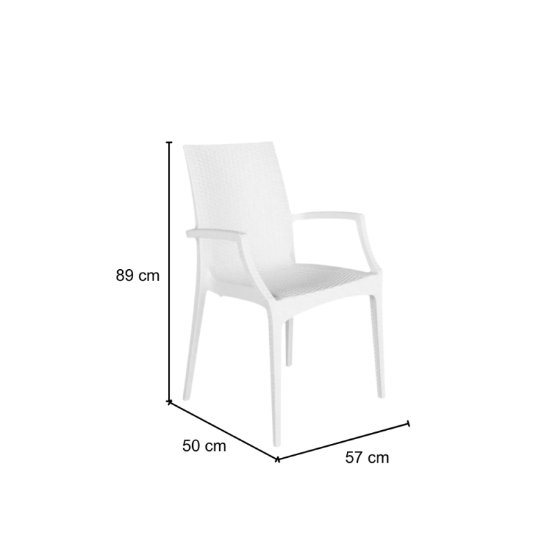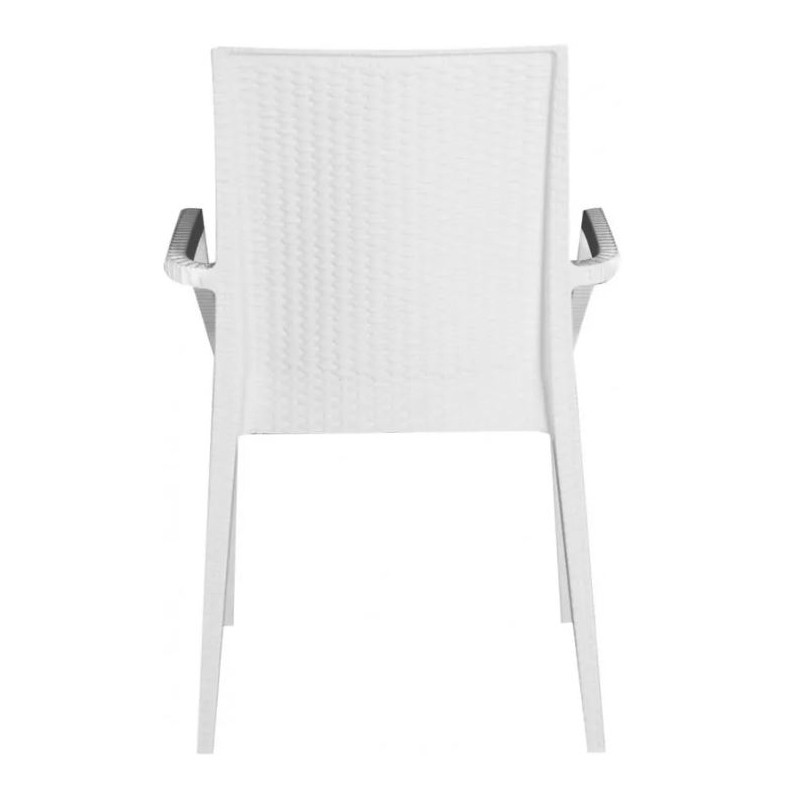 - GLOUPIE Set 4 Poltrone Giardino Jersey Con Braccioli, In Polipropilene Bianco Dall'Effetto Rattan Impilabile, 57 x 50 x H 89 Cm