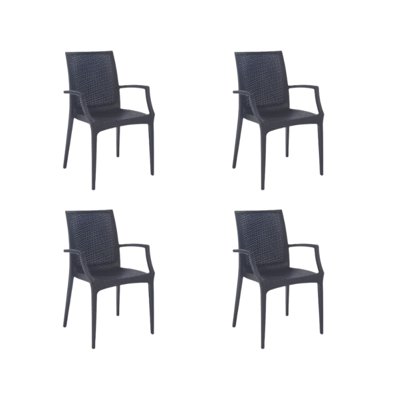 - GLOUPIE Set 4 Poltrone Giardino Jersey Con Braccioli, In Polipropilene Antracite Effetto Rattan Impilabile, 57 x 50 x H 89 Cm