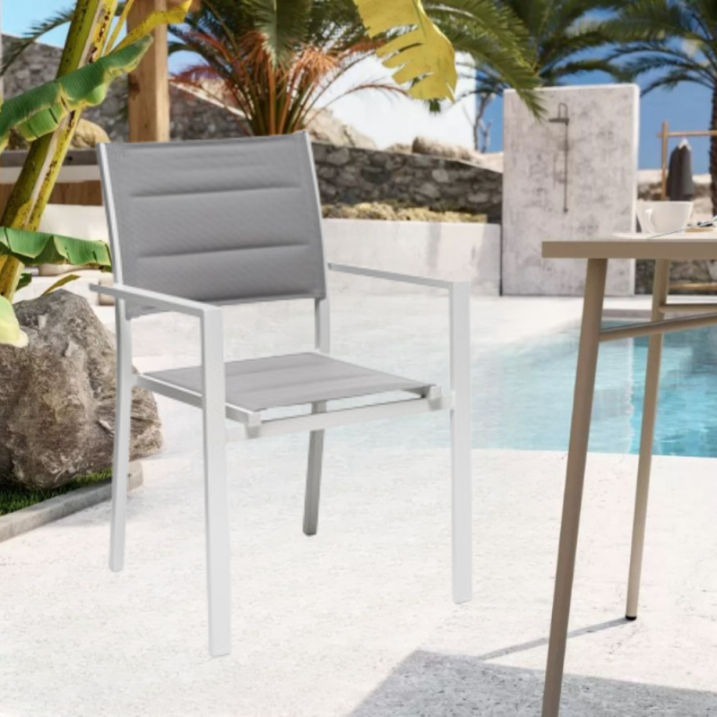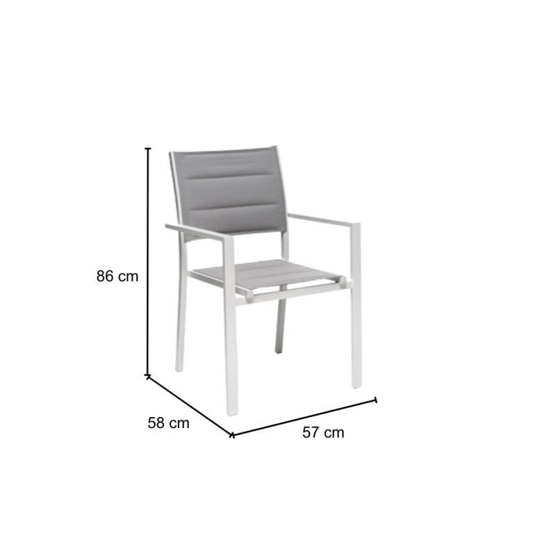 [Qualita' certificata]: Gloupie poltrona da giardino alamos con braccioli, in alluminio verniciato a polvere epossidica resistente ai raggi uv e alle intemperie, impilabile, lunghezza 57 cm x profondità 58 cm x altezza 86 cm, seduta confortevole in textilene morbido e anti ingiallimento per arredo esterno, terrazze, piscina, patios e balconate