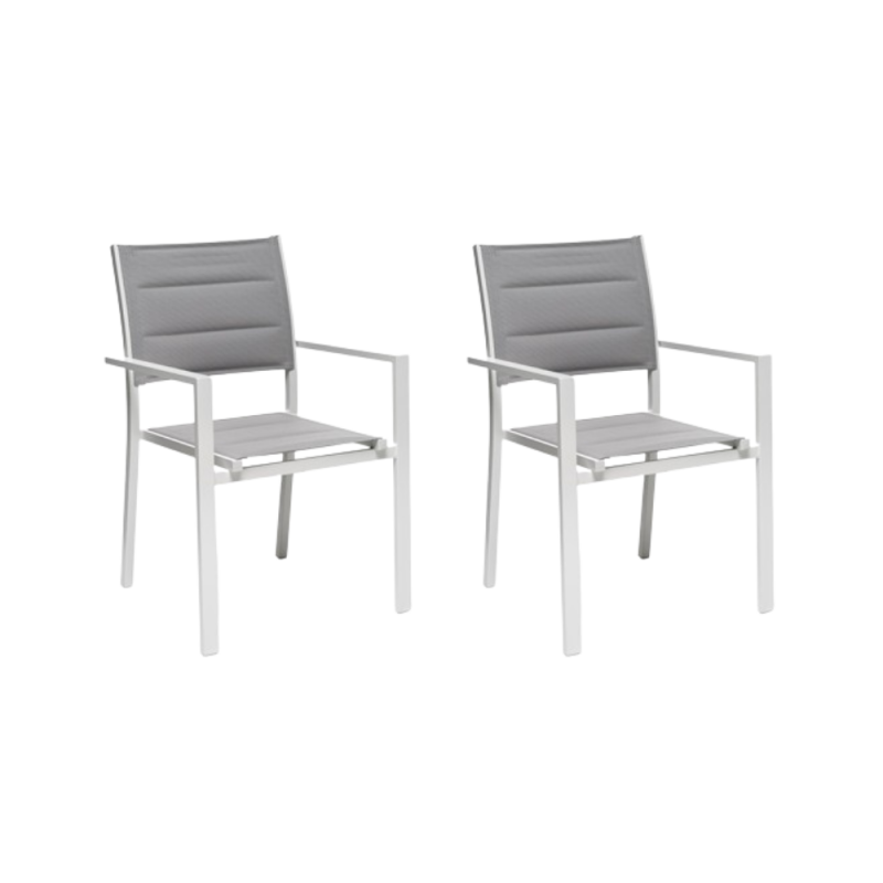 GLOUPIE Set 2 Poltrone Da Esterno Alamos In Alluminio Verniciato Bianco, Impilabile, L 57 x P 58 x H 86 Cm, Seduta In Textilene