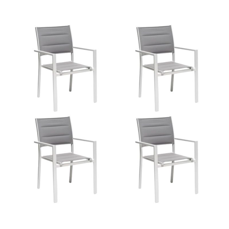 GLOUPIE Set 4 Poltrone Da Esterno Alamos In Alluminio Verniciato Bianco, Impilabile, L 57 x P 58 x H 86 Cm, Seduta In Textilene