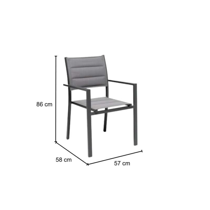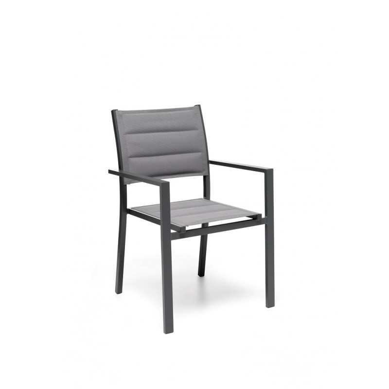 [Qualita' certificata]: Gloupie poltrona da giardino alamos con braccioli, in alluminio verniciato a polvere epossidica resistente ai raggi uv e alle intemperie, impilabile, lunghezza 57 cm x profondità 58 cm x altezza 86 cm, seduta confortevole in textilene morbido e anti ingiallimento per arredo esterno, terrazze, piscina, patios e balconate