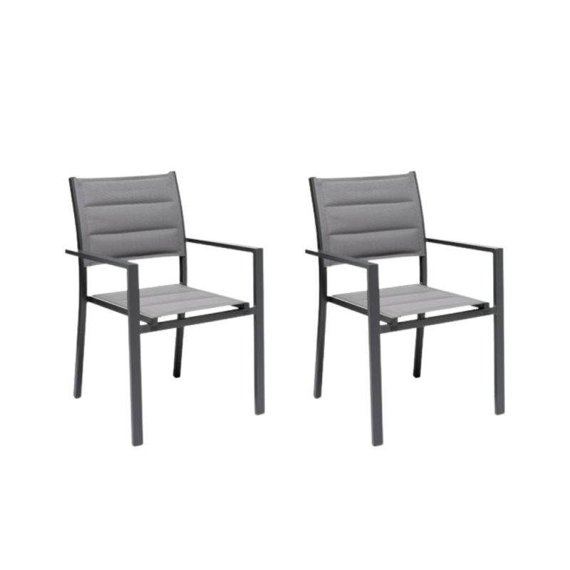 GLOUPIE Set 2 Poltrone Da Esterno Alamos In Alluminio Verniciato Antracite, Impilabile, 57 x 58 x H 86 Cm, Seduta In Textilene