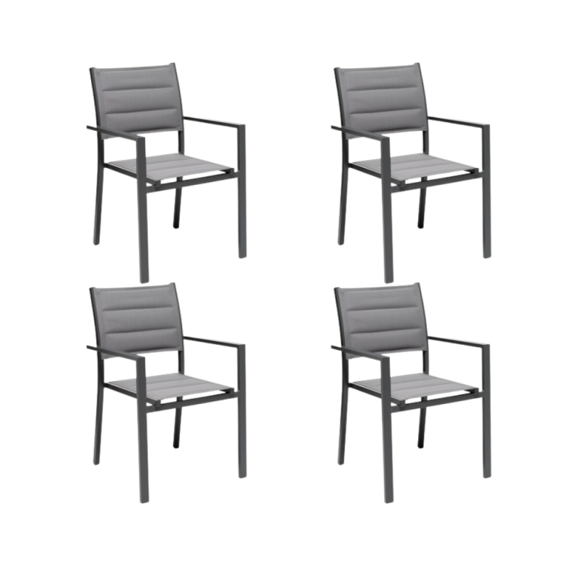 GLOUPIE Set 4 Poltrone Da Esterno Alamos In Alluminio Verniciato Antracite, Impilabile, 57 x 58 x H 86 Cm, Seduta In Textilene