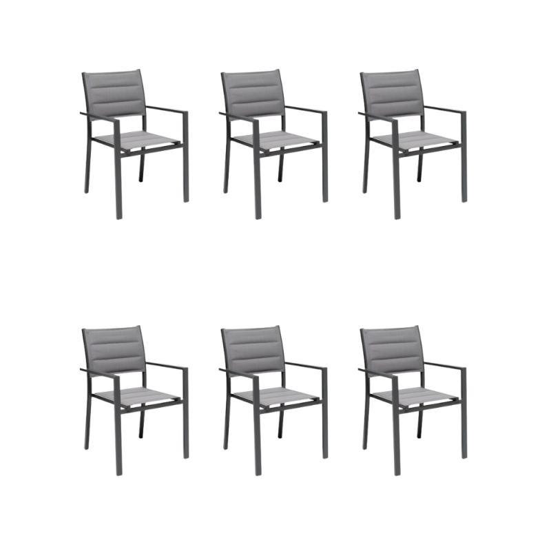GLOUPIE Set 6 Poltrone Da Esterno Alamos In Alluminio Verniciato Antracite, Impilabile, 57 x 58 x H 86 Cm, Seduta In Textilene