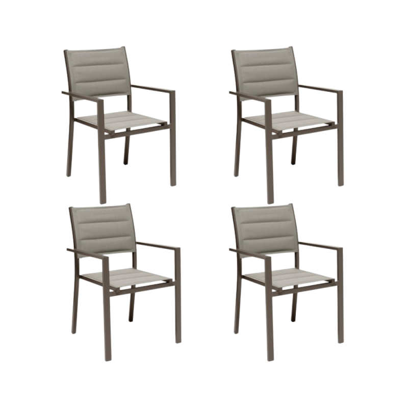 GLOUPIE Set 4 Poltrone Da Esterno Alamos In Alluminio Verniciato Marrone, Impilabile, L 57 x P 58 x H 86 Cm, Seduta In Textilene