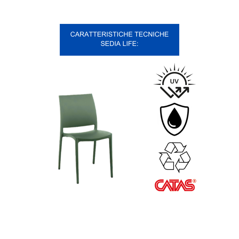 [Design versatile e funzionale]: Dallo stile semplice e lineare, con la possibilità di svariare tra diverse splendide colorazioni, la sedia life si presta ad arredare con eleganza e modernità qualsiasi ambiente, interno o esterno. Che si tratti del tuo giardino, terrazzo, balcone, cucina, bar o ristorante, si integrerà perfettamente donando un tocco di raffinatezza. Compatta, e' ideale anche per spazi ridotti, mentre la possibilità di impilarla facilita lo stoccaggio e il trasporto