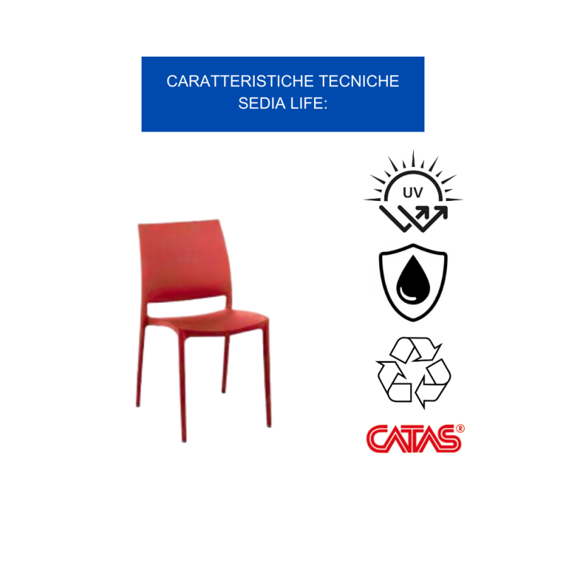 [Sicurezza e affidabilita']: La sedia life è un prodotto sicuro e affidabile, realizzato con materiali di alta qualità e testato per garantirne la resistenza e la stabilità. La struttura robusta è in grado di sopportare un peso fino a 120 kg, mentre i piedini fermi e saldi assicurano una perfetta aderenza al suolo, prevenendo cadute e ribaltamenti. Lo spazio vuoto sul fondo dello schienale facilita la presa e il trasporto, rendendola ancora più pratica da utilizzare