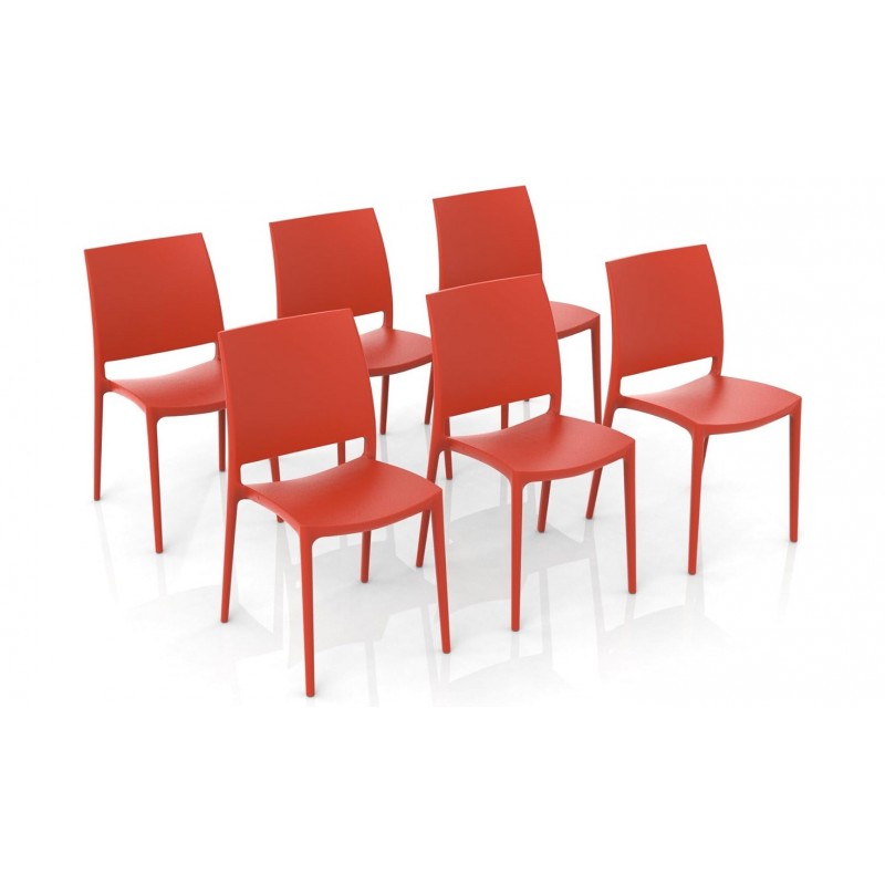 - GLOUPIE Set 6 Sedie Da Esterno E Interno Impilabile Life In Polipropilene Neutro Rinforzato Color Corallo 43,5 x 50,5 x H 84 Cm