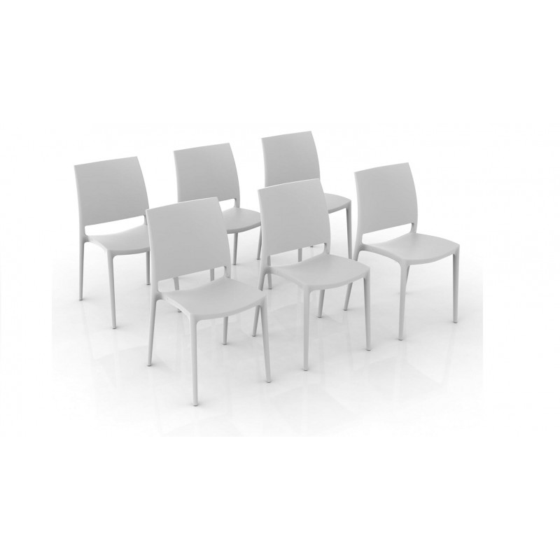 - GLOUPIE Set 6 Sedie Da Esterno E Interno Impilabile Life In Polipropilene Neutro Rinforzato Color Bianco 43,5 x 50,5 x H 84 Cm