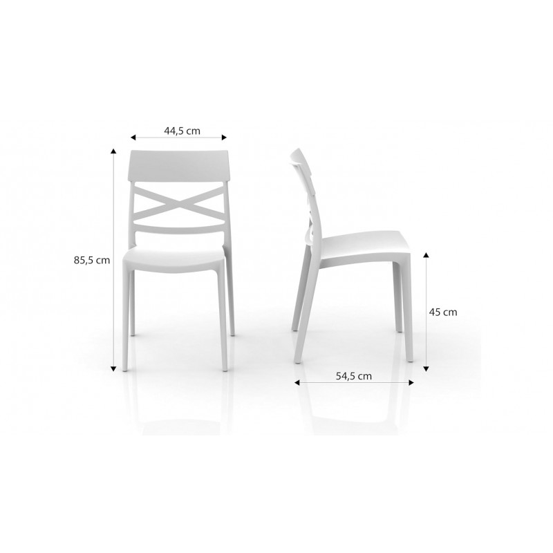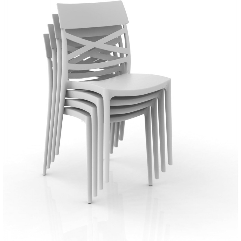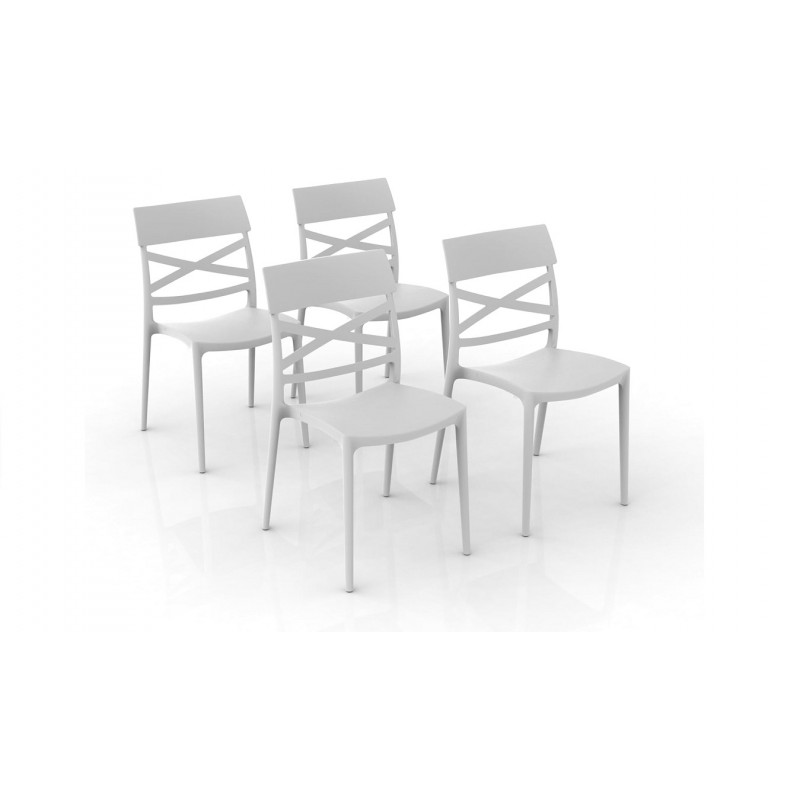- GLOUPIE Set 4 Sedie Impilabili Jazz In Polipropilene Neutro Rinforzato Bianco, L 44,5 x P 54,5 x H 85,5 Cm, Made In Italy