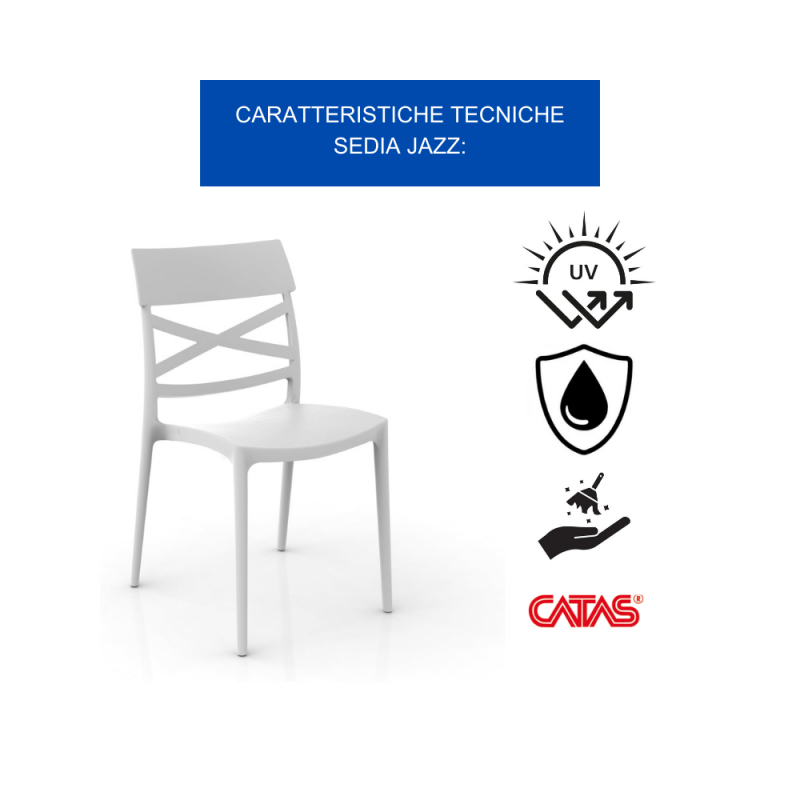 [Qualita' certificata made in italy]: Gloupie sedia per ambienti esterni e interni impilabile jazz in polipropilene neutro rinforzato resistente ai raggi uva, all'acqua, ai graffi e agli urti, lunghezza 44,5 x profondità 54,5 x altezza 85,5 cm, 100% riciclabile ed ecologica secondo gli standard per la sostenibilità ambientale, totalmente progettata e realizzata in italia, a norma catas per l'utilizzo anche in settori commerciali di tipo contract