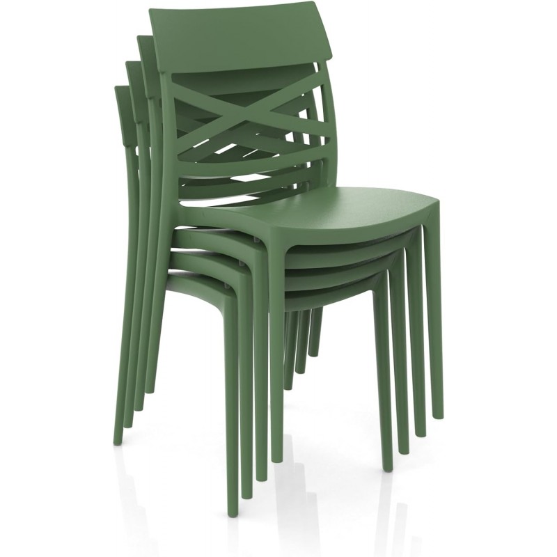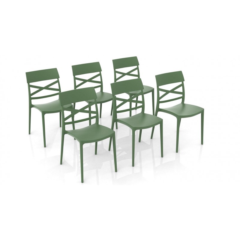 - GLOUPIE Set 6 Sedie Impilabili Jazz In Polipropilene Neutro Rinforzato Agave, L 44,5 x P 54,5 x H 85,5 Cm, Made In Italy