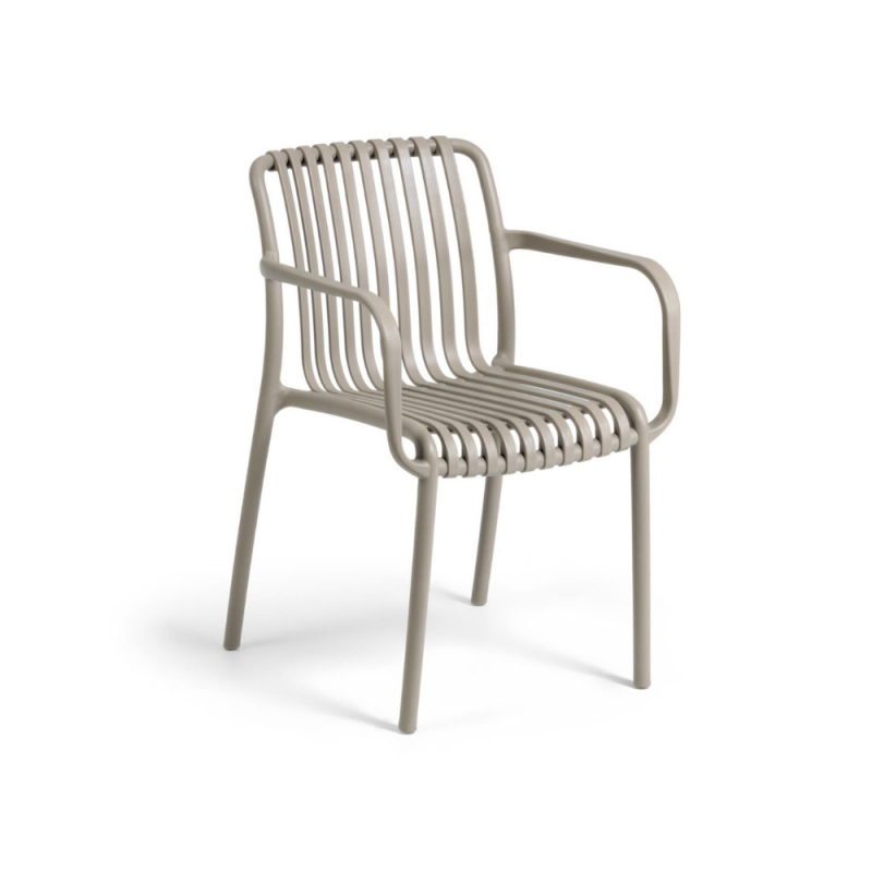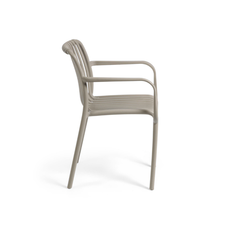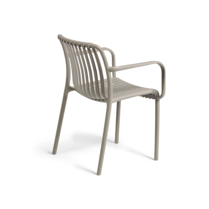 - GLOUPIE Set 4 Poltrone Eloise In Polipropilene Solido E Resistente Alle Intemperie Tortora, Impilabili, L 56 x P 42 x H 81 Cm