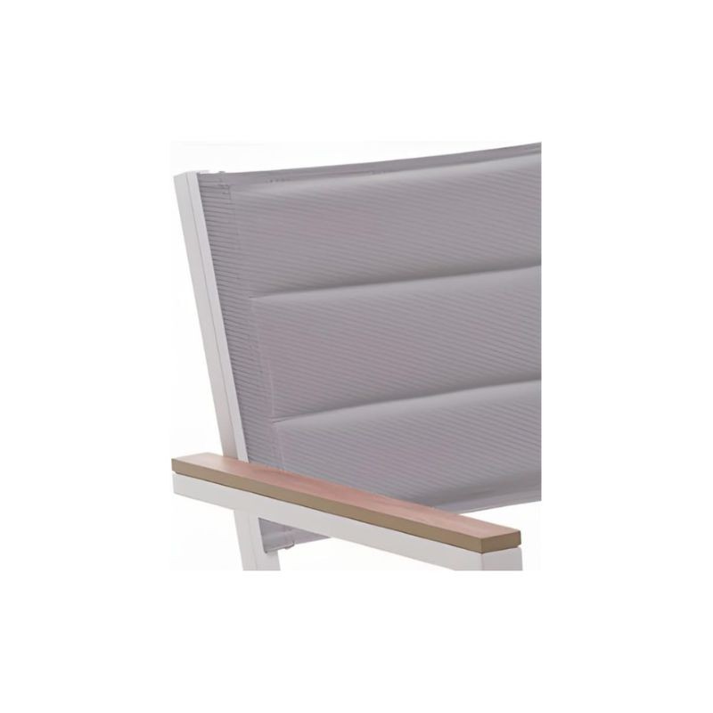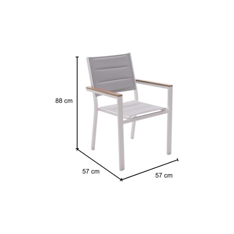 KLULK Poltrona Da Giardino Cayman Con Braccioli Dotati Di Inserti In Polywood Color Teak, Struttura Realizzata In Alluminio Verniciato A Polvere Epossidica Resistente Ai Raggi UV E Alle Intemperie, Impilabile, Lunghezza 57 Cm x Profondità 57 Cm x Altezza 88 Cm, Seduta Confortevole In Textilene Morbido E Anti Ingiallimento Per Arredo Esterno, Terrazze, Piscina, Patios E Balconate