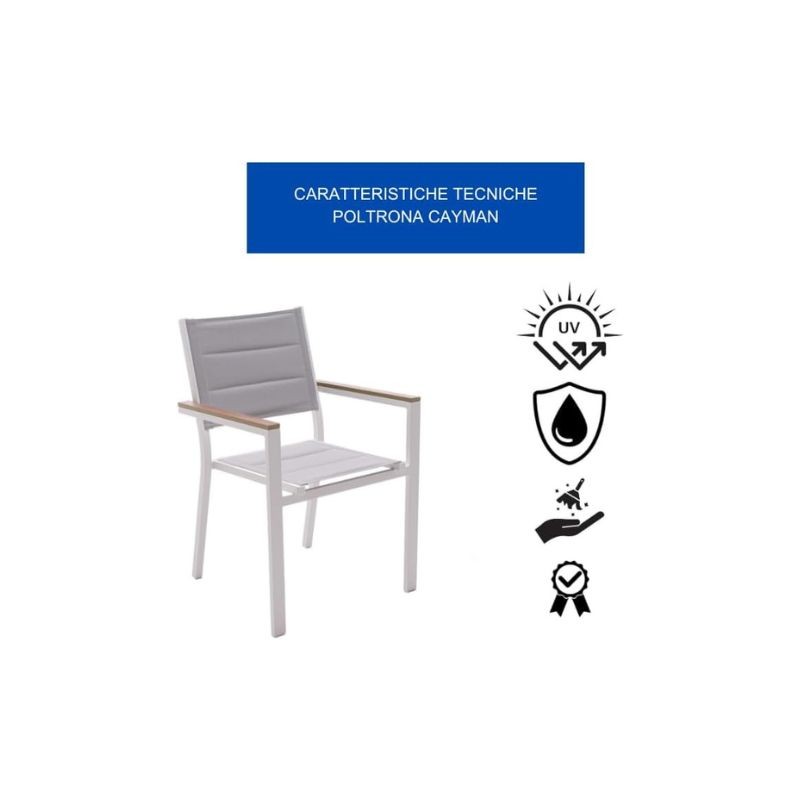 La Sedia Cayman Si Distingue Per Il Suo Design Moderno Ed Elegante, Completato Dall'Inserto In Polywood Color Teak Che Contraddistingue Lo Stile Dell'Arredamento Esterno. Che Tu Abbia Un Giardino Classico, Un Patio Moderno O Una Terrazza Minimalista, La Poltrona Si Integrerà Perfettamente All'Ambiente Circostante. Scegli Tra Diverse Colorazioni Per Abbinarla Al Tuo Gusto E Creare Un'Oasi Di Relax Che Rispecchi La Tua Personalità