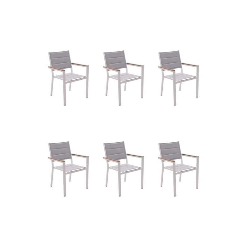 KLULK Poltrona Da Giardino Cayman Con Braccioli Dotati Di Inserti In Polywood Color Teak, Struttura Realizzata In Alluminio Verniciato A Polvere Epossidica Resistente Ai Raggi UV E Alle Intemperie, Impilabile, Lunghezza 57 Cm x Profondità 57 Cm x Altezza 88 Cm, Seduta Confortevole In Texilene Morbido E Anti Ingiallimento Per Arredo Esterno, Terrazze, Piscina, Patios E Balconate