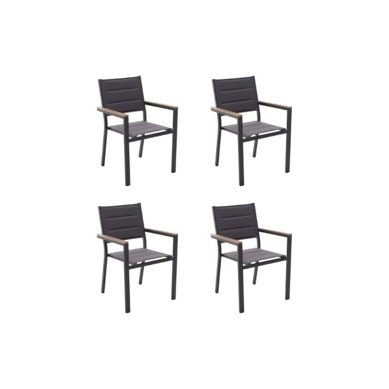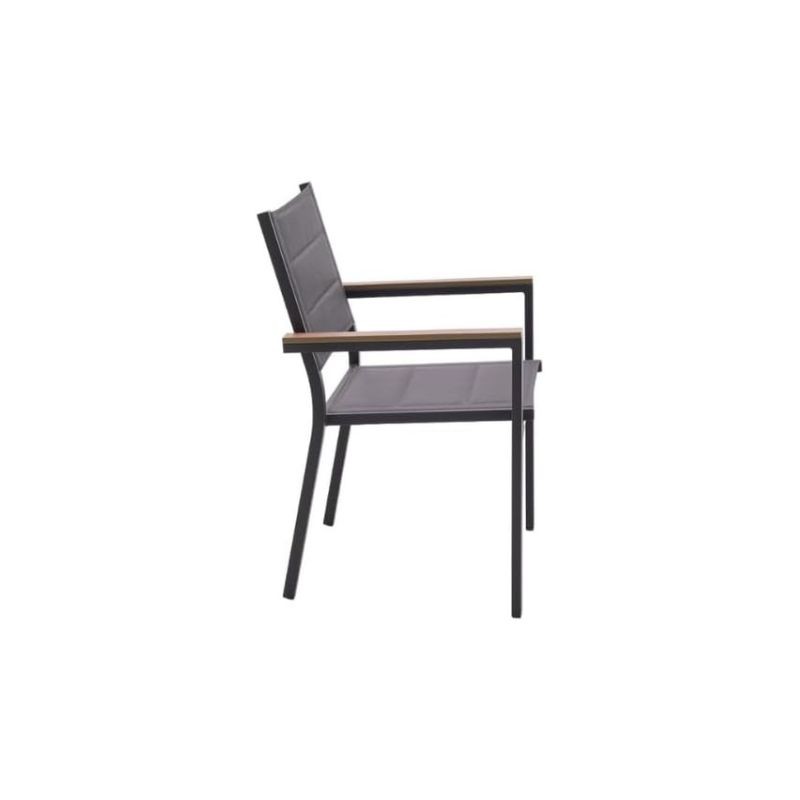 KLULK Poltrona Da Giardino Cayman Con Braccioli Dotati Di Inserti In Polywood Color Teak, Struttura Realizzata In Alluminio Verniciato A Polvere Epossidica Resistente Ai Raggi UV E Alle Intemperie, Impilabile, Lunghezza 57 Cm x Profondità 57 Cm x Altezza 88 Cm, Seduta Confortevole In Textilene Morbido E Anti Ingiallimento Per Arredo Esterno, Terrazze, Piscina, Patios E Balconate