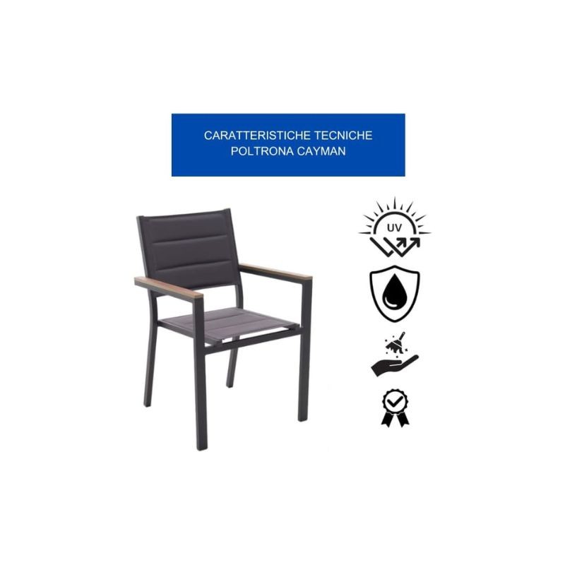 La Sedia Cayman Si Distingue Per Il Suo Design Moderno Ed Elegante, Completato Dall'Inserto In Polywood Color Teak Che Contraddistingue Lo Stile Dell'Arredamento Esterno. Che Tu Abbia Un Giardino Classico, Un Patio Moderno O Una Terrazza Minimalista, La Poltrona Si Integrerà Perfettamente All'Ambiente Circostante. Scegli Tra Diverse Colorazioni Per Abbinarla Al Tuo Gusto E Creare Un'Oasi Di Relax Che Rispecchi La Tua Personalità