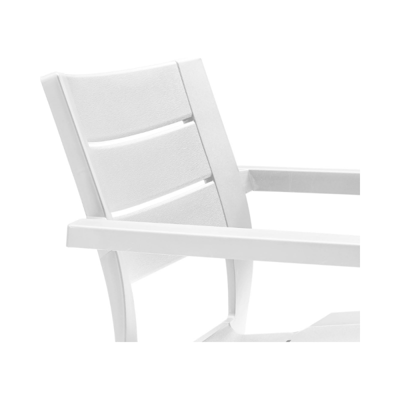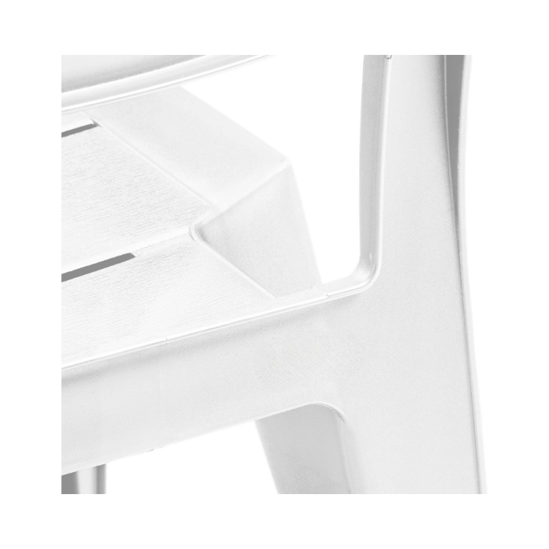 GLOUPIE Poltrona Da Esterno Vicky Con Braccioli In Polipropilene Resistente Ai Raggi UV E Alle Intemperie Bianco Dall'Effetto Intrecciato Rattan, Impilabile, L 61,5 x P 58,5 x H 79 Cm, Seduta Confortevole Per Arredi Giardino, Terrazze, Piscina, Patios E Balconate