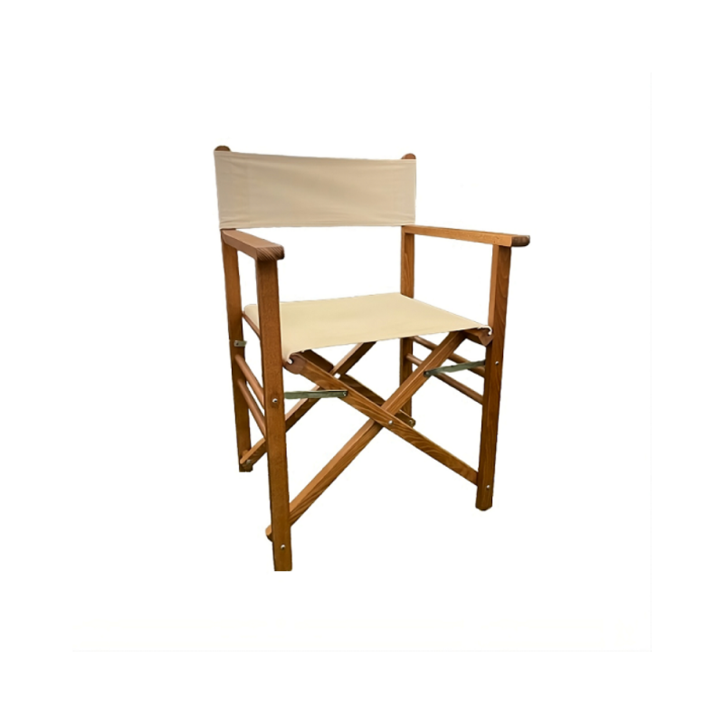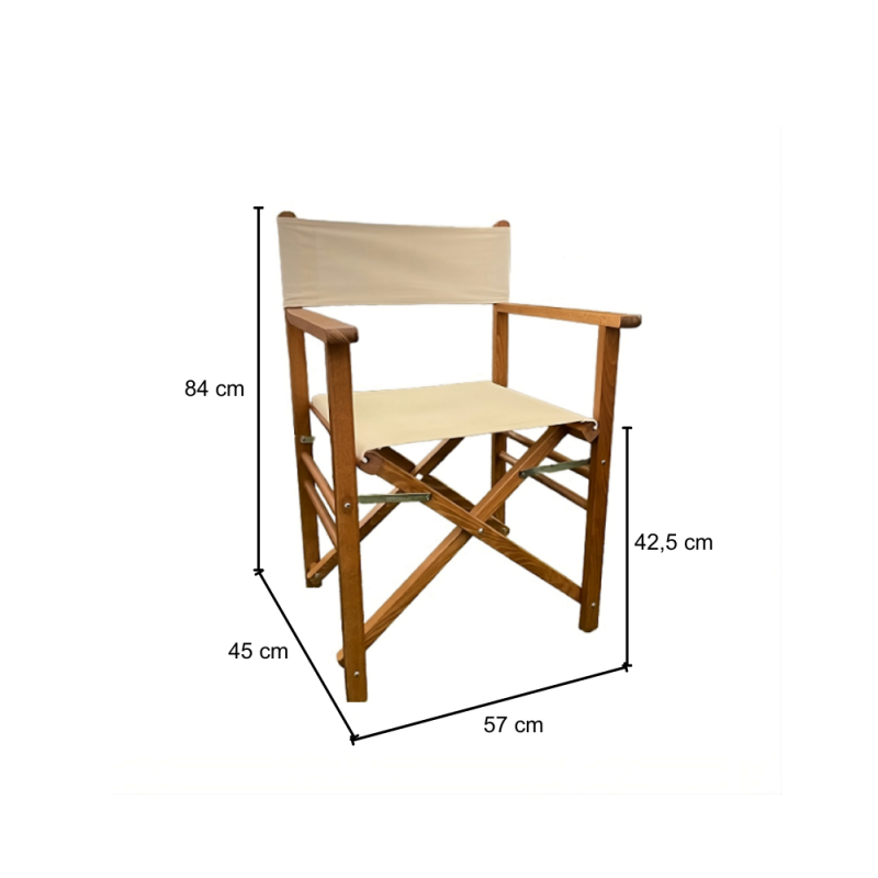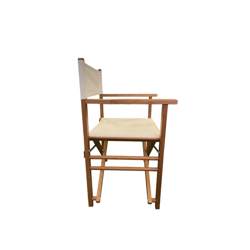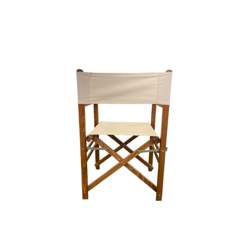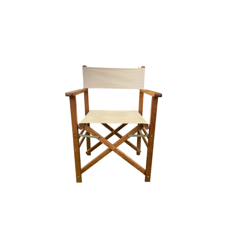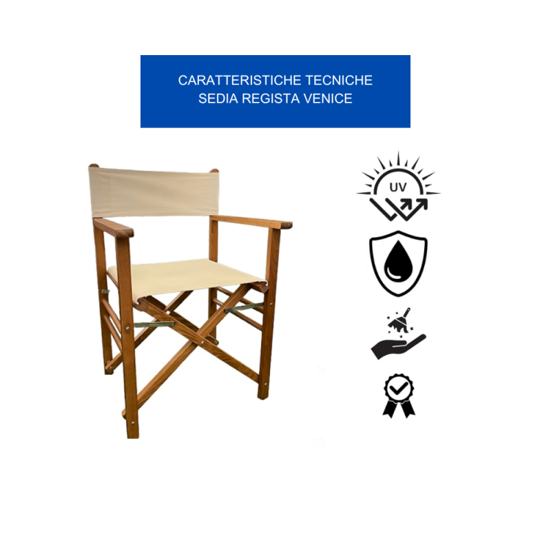 GLOUPIE Sedia Regista Pieghevole In Legno Solido E Resistente Alle Intemperie E Ai Raggi UV Della Linea Venice, Lunghezza 57 Cm x Profondità 45 Cm x Altezza Seduta 42,5 Cm x Altezza Totale 84 Cm, Seduta In Comodo Poliestere Color Ecrù Anti Ingiallimento Morbido E Confortevole, Richiudibile Per Un Facile Spostamento E Conservazione Quando Non Utilizzata, Totalmente Made In Italy