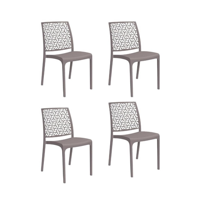 Gloupie Set 4 Sedie Ninfa in Polipropilene Taupe,Impilabili, 46x54x80 cm, peso 3,3 kg,Schienale a Forma di Ninfee,Made in italy