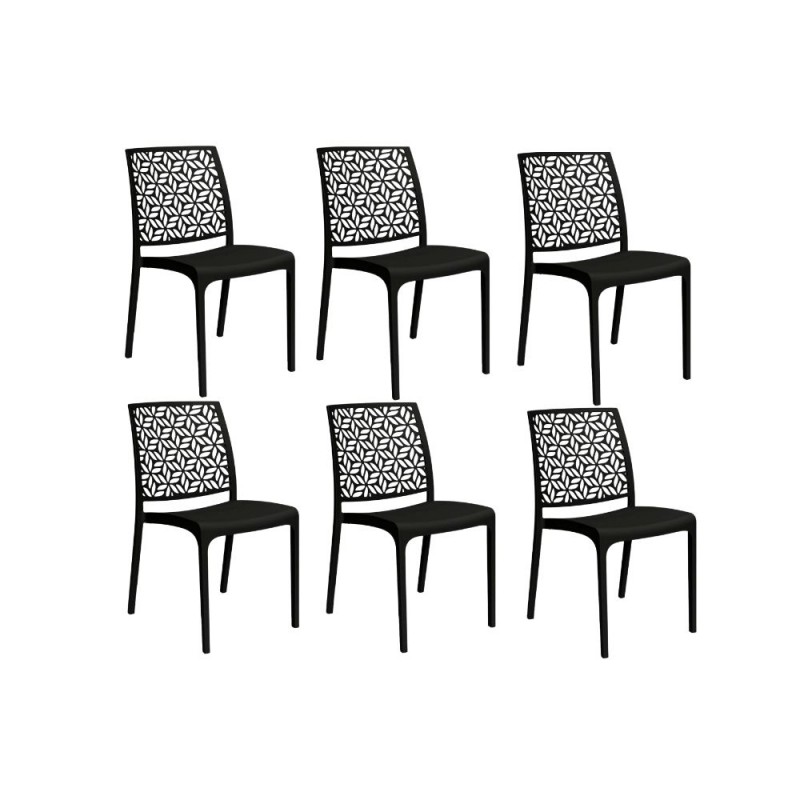 Gloupie Set 6 Sedie Ninfa in Polipropilene Antracite,Impilabili,46x54x80cm,peso3,3 kg,Schienale a Forma di Ninfee,Made in italy
