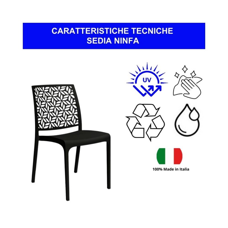 [SICUREZZA E AFFIDABILITA']: La Sedia Ninfa è Un Prodotto Sicuro E Affidabile, Realizzato Con Materiali Di Alta Qualità E Testato Per Garantirne La Resistenza E La Stabilità. La Struttura Robusta, Mentre I Piedini Fermi E Saldi Assicurano Una Perfetta Aderenza Al Suolo, Prevenendo Cadute E Ribaltamenti. Lo Spazio Vuoto Sul Fondo Dello Schienale Facilita La Presa E Il Trasporto, Rendendola Ancora Più Pratica Da Utilizzare