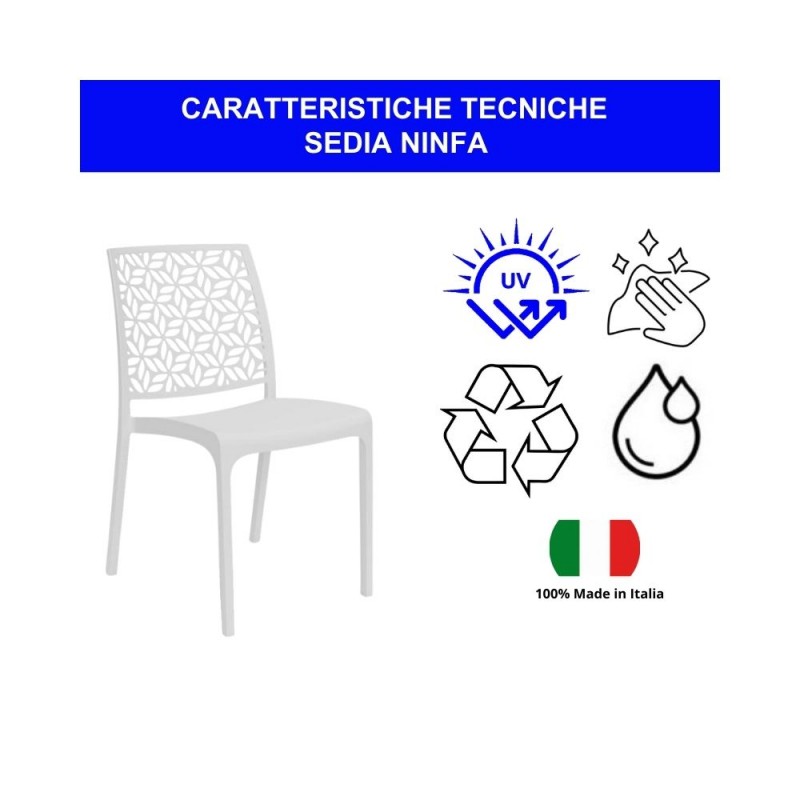 [SICUREZZA E AFFIDABILITA']: La Sedia Ninfa è Un Prodotto Sicuro E Affidabile, Realizzato Con Materiali Di Alta Qualità E Testato Per Garantirne La Resistenza E La Stabilità. La Struttura Robusta, Mentre I Piedini Fermi E Saldi Assicurano Una Perfetta Aderenza Al Suolo, Prevenendo Cadute E Ribaltamenti. Lo Spazio Vuoto Sul Fondo Dello Schienale Facilita La Presa E Il Trasporto, Rendendola Ancora Più Pratica Da Utilizzare