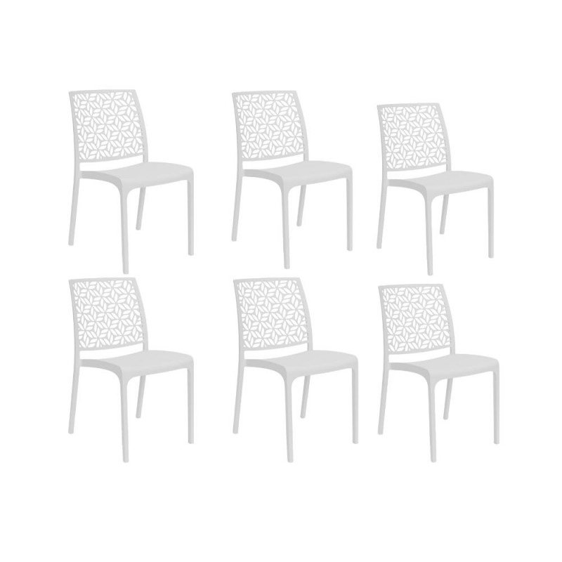 Gloupie Set 6 Sedie Ninfa in Polipropilene Bianco,Impinabili,46x54x80cm,peso3,3 kg,Schienale a Forma di Ninfee,Made in italy