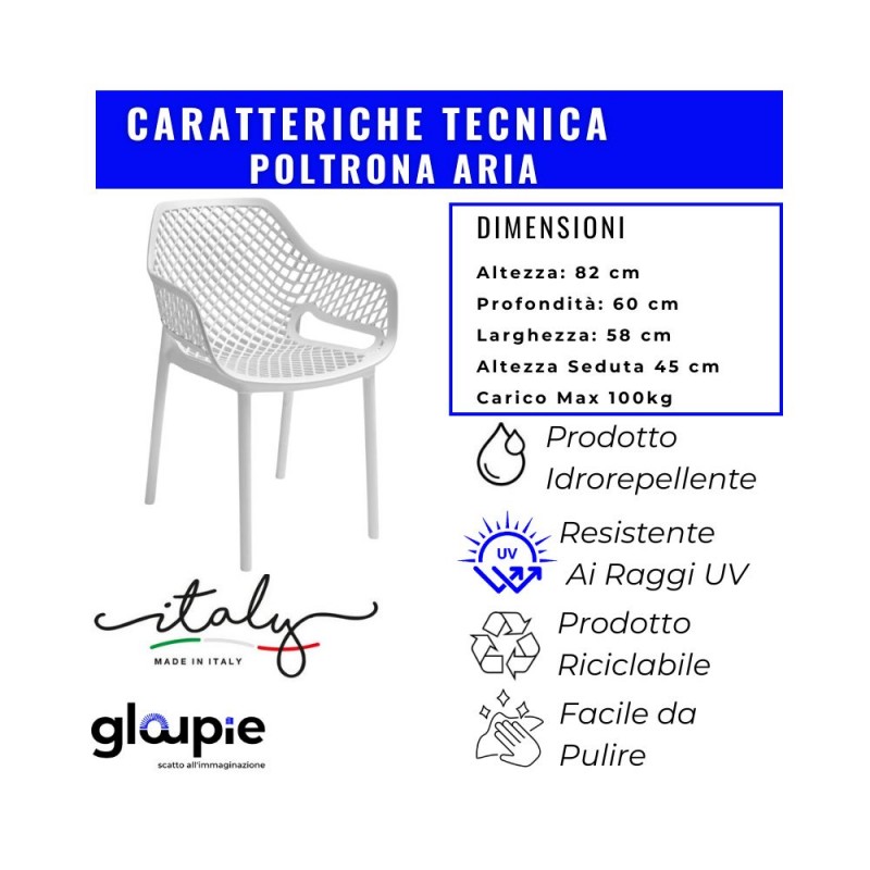 Gloupie Set 2 Poltrone Aria In Polipropilene Bianco, Impilabile, Per Interno Ed Esterno, Interamente Progettata E Realizzata In Italia. Rinforzata E Resistente Ai Raggi Uv, All’acqua, Ai Graffi E Agli Urti, Questa Sedia Combina Robustezza E Praticità. Le Sue Dimensioni Sono 58 Cm X 60 Cm X 82 Cm, Con Un Peso Di Soli 3,8 Kg, Che La Rende Facilmente Manovrabile E Versatile. Realizzata In Polipropilene 100% Riciclabile, È Un Prodotto Ecologico Che Rispetta Gli Standard Per La Sostenibilità Ambientale.