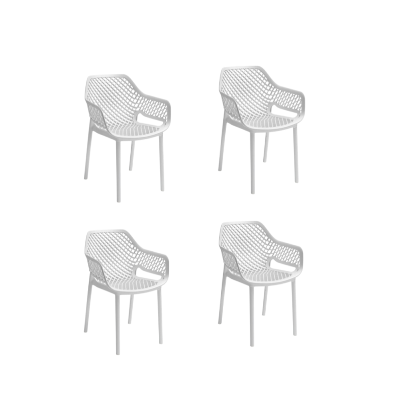 Gloupie Set 4 Poltrone Aria In Polipropilene Bianco, Impilabile, Per Interno Ed Esterno, Interamente Progettata E Realizzata In Italia. Rinforzata E Resistente Ai Raggi Uv, All’acqua, Ai Graffi E Agli Urti, Questa Sedia Combina Robustezza E Praticità. Le Sue Dimensioni Sono 58 Cm X 60 Cm X 82 Cm, Con Un Peso Di Soli 3,8 Kg, Che La Rende Facilmente Manovrabile E Versatile. Realizzata In Polipropilene 100% Riciclabile, È Un Prodotto Ecologico Che Rispetta Gli Standard Per La Sostenibilità Ambientale.