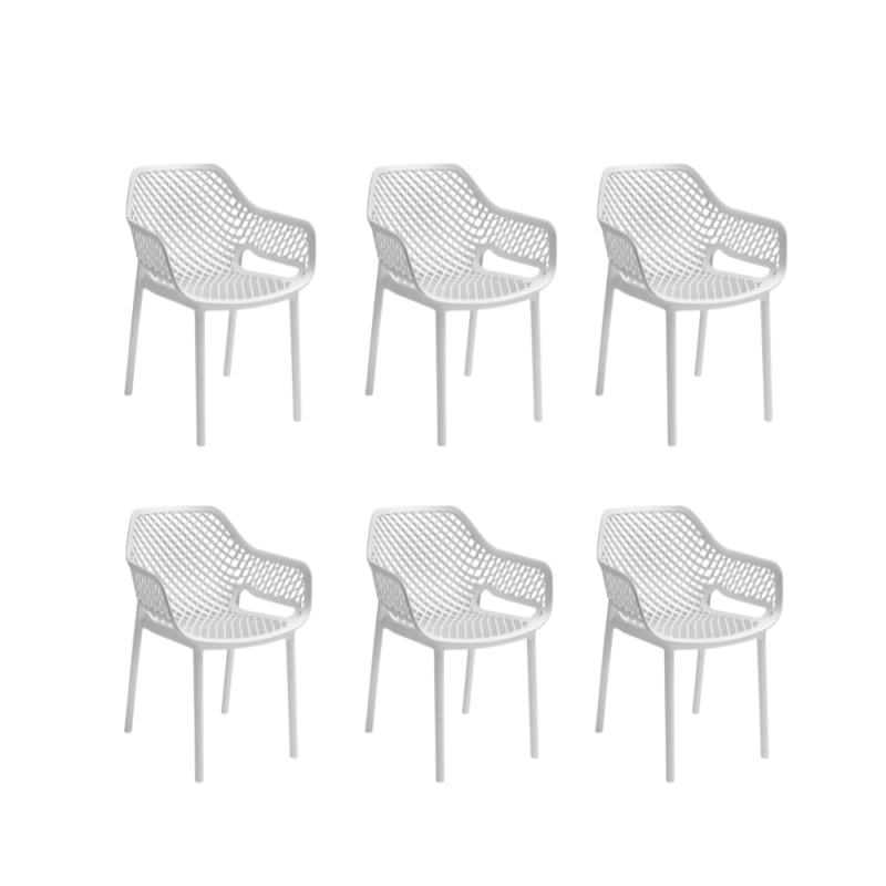 Gloupie Set 6 Poltrone Aria In Polipropilene Bianco, Impilabile, Per Interno Ed Esterno, Interamente Progettata E Realizzata In Italia. Rinforzata E Resistente Ai Raggi Uv, All’acqua, Ai Graffi E Agli Urti, Questa Sedia Combina Robustezza E Praticità. Le Sue Dimensioni Sono 58 Cm X 60 Cm X 82 Cm, Con Un Peso Di Soli 3,8 Kg, Che La Rende Facilmente Manovrabile E Versatile. Realizzata In Polipropilene 100% Riciclabile, È Un Prodotto Ecologico Che Rispetta Gli Standard Per La Sostenibilità Ambientale.